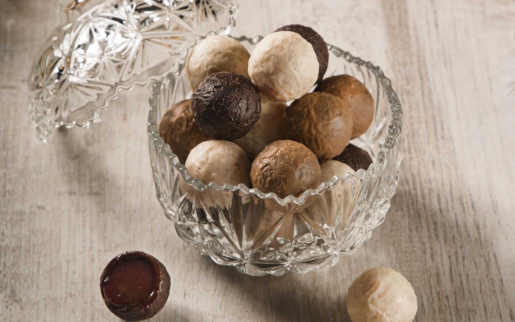 Avec leur cœur de fruit, entre le coulis et le confit, elles offrent une vraie surprise lorsque l’on croque leur coque de chocolat, à la fois par leur goût très frais et par leur texture.