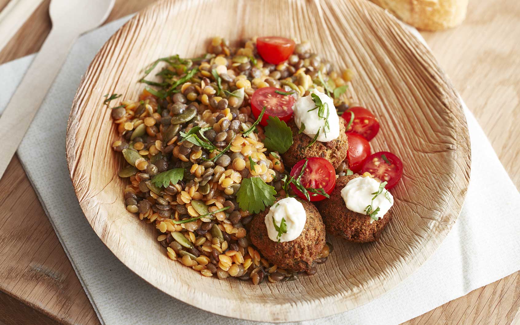 Un classique de la cuisine orientale qui ravira les amateurs de saveurs d’ailleurs. Ce mezze bowl se compose d’un duo de lentilles vertes et corail, accompagné de délicieux falafels et d’une crème de pois chiche onctueuse.