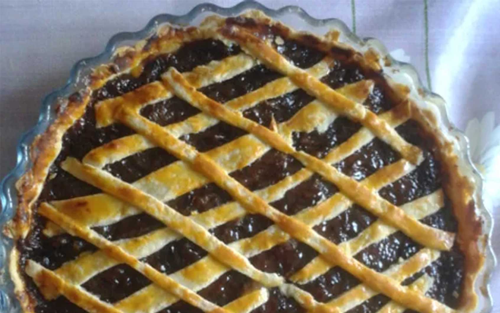 Disposez le restant de pâte en croisillons sur le dessus de la tarte.